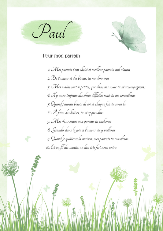 Les 10 commandements Parrain Marraine - Vert