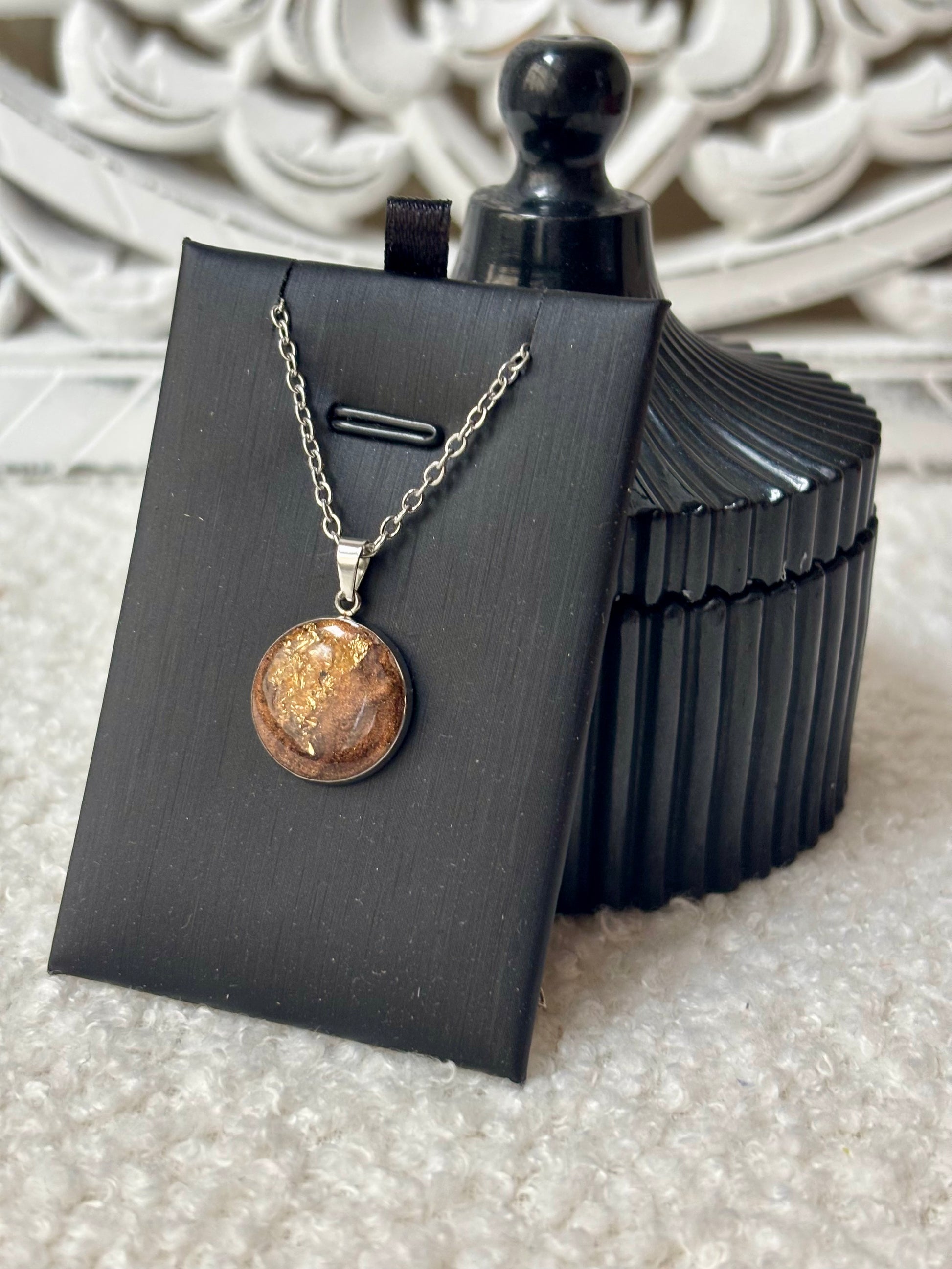 Élégant et intemporel, ce collier en acier inoxydable argenté est sublimé par une touche de résine colorée réalisée à la main. Un bijou délicat qui capte la lumière et apporte une note de couleur subtile, parfait pour rehausser une tenue tout en finesse.