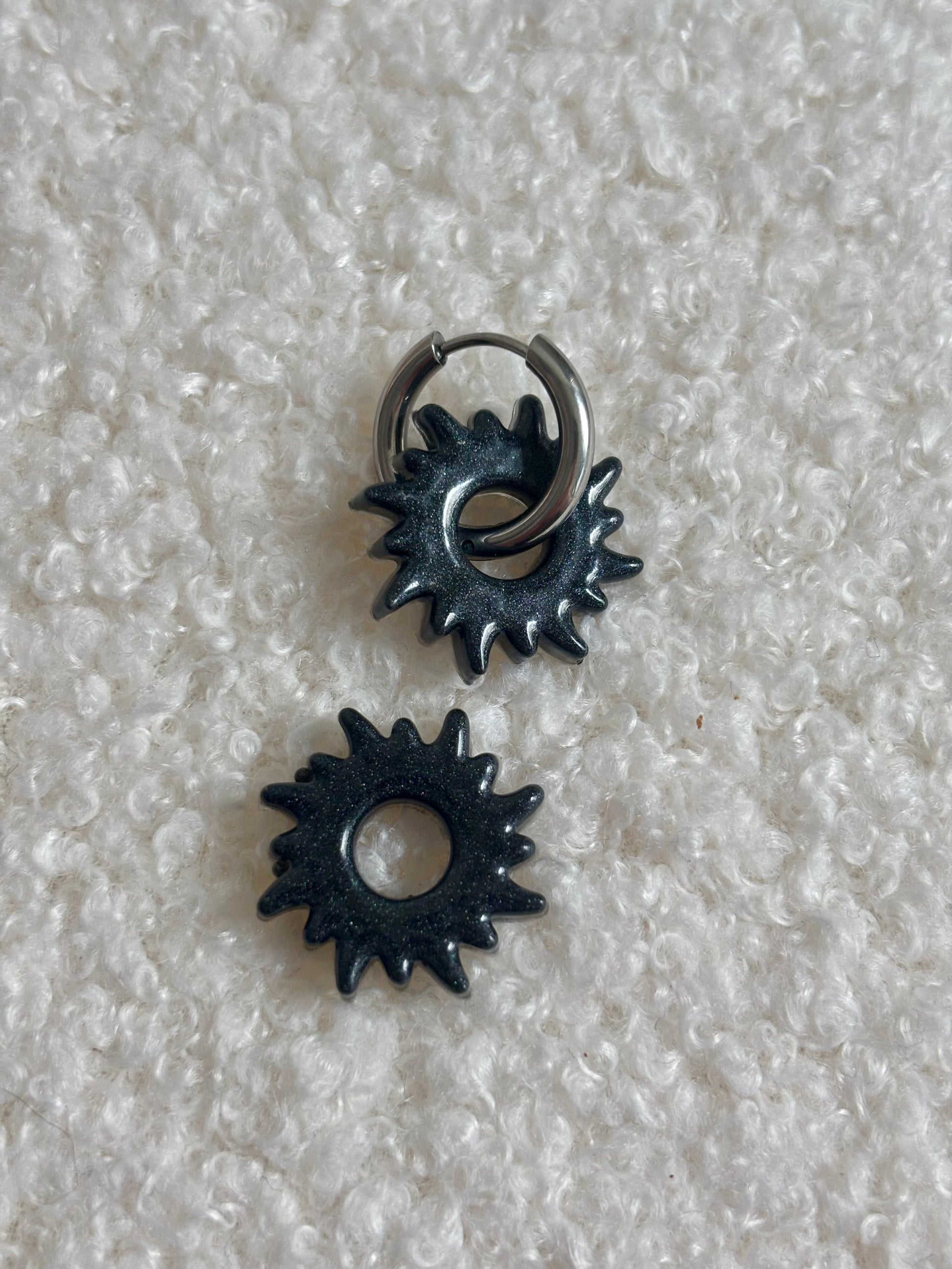 Boucles d’oreilles avec ses petits soleils noirs en résine.