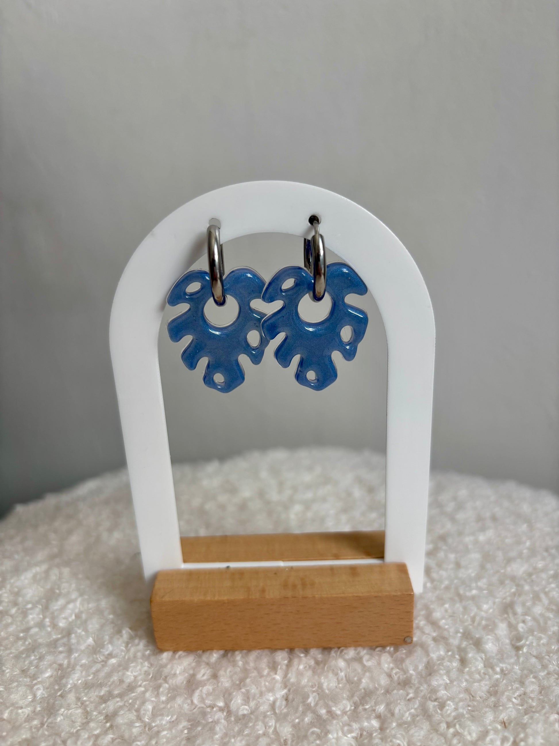 Boucles d’oreilles feuilles tropicales bleues
