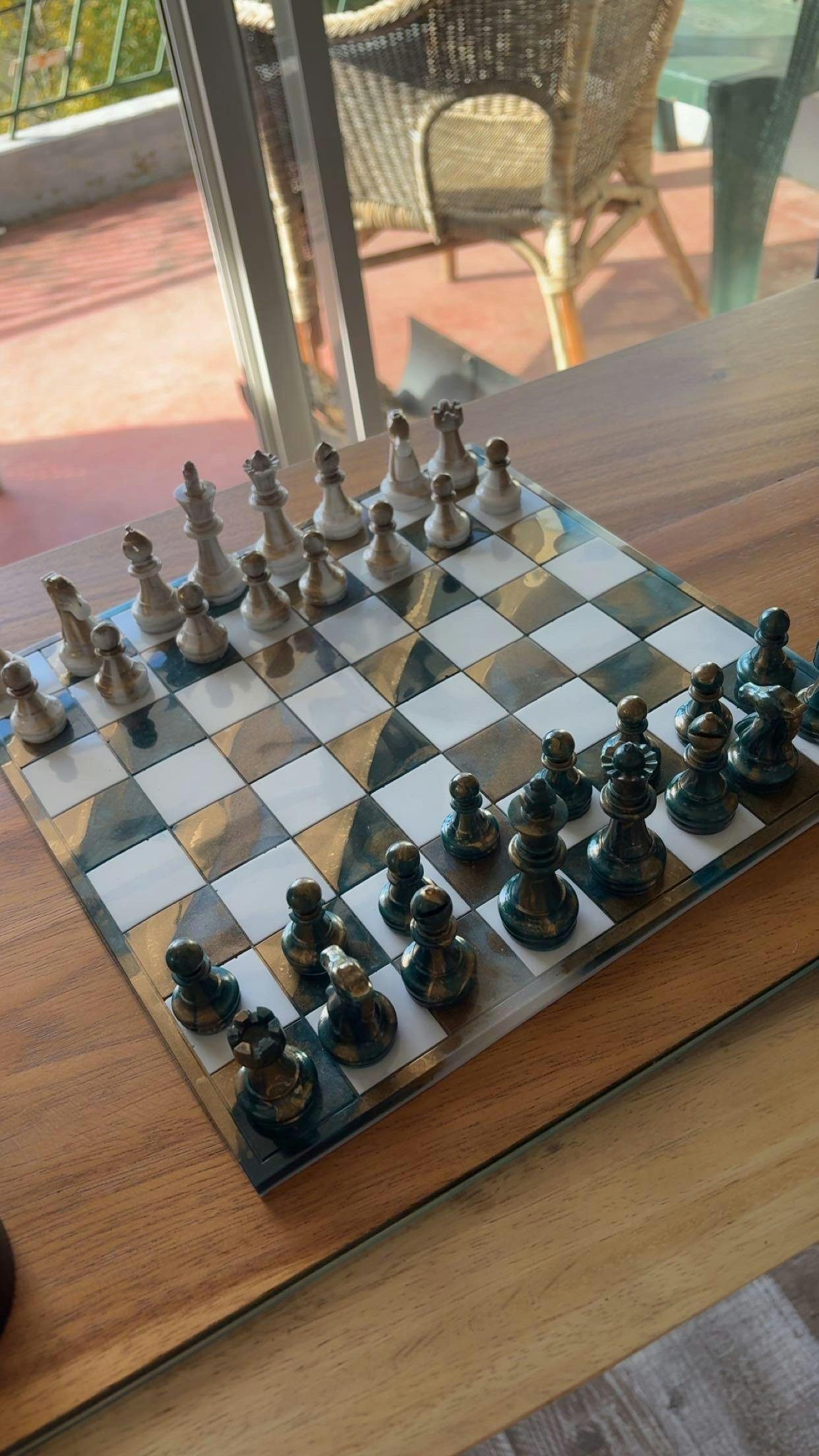 Échiquier fait main en résine epoxy personnalisable selon vos souhaits.