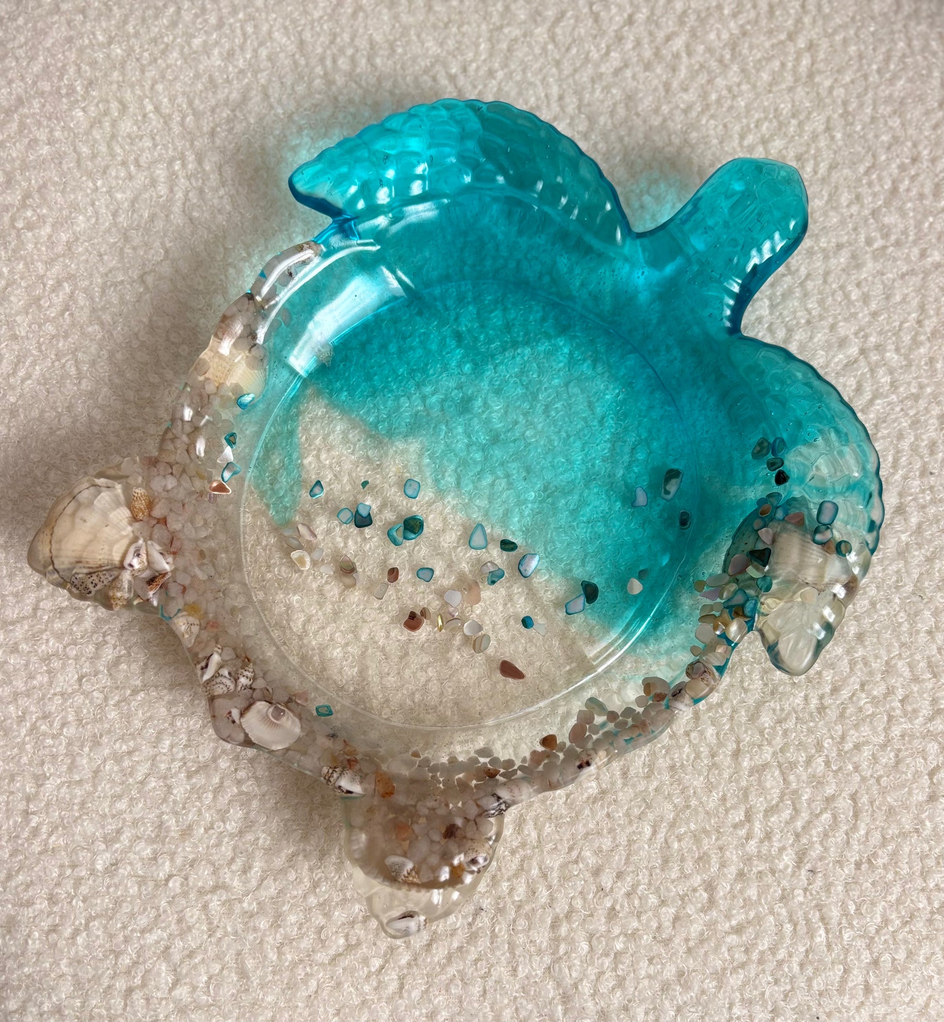 Alliez originalité et élégance avec ce magnifique plateau en forme de tortue entièrement réalisé à la main en résine époxy.