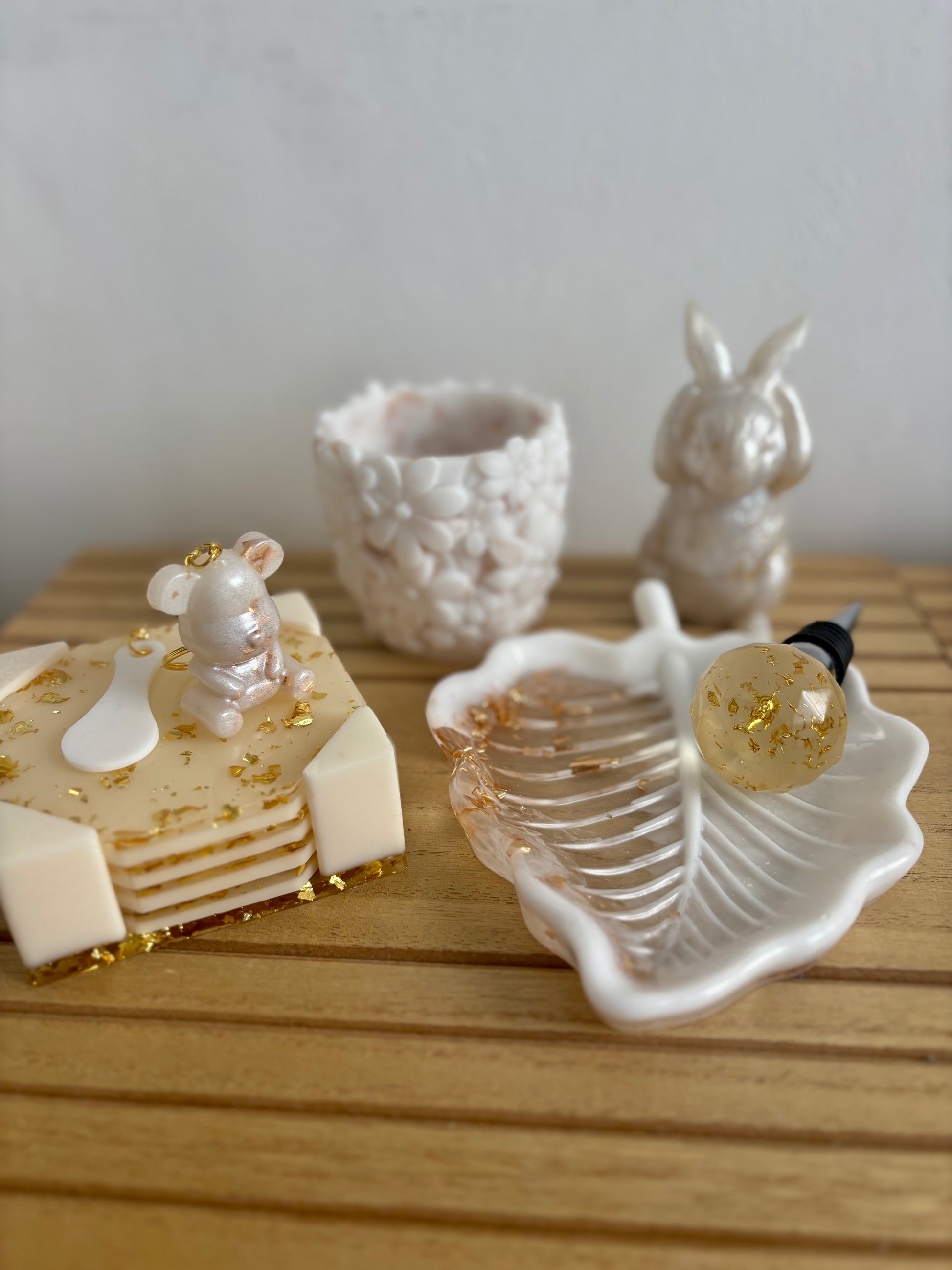 Découvrez un lot raffiné, lumineux et entièrement artisanal, idéal pour les amoureux de déco douce et chic.