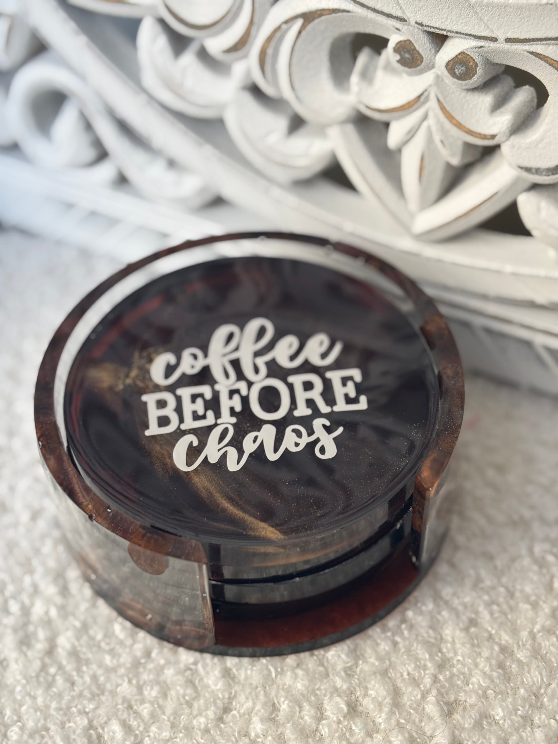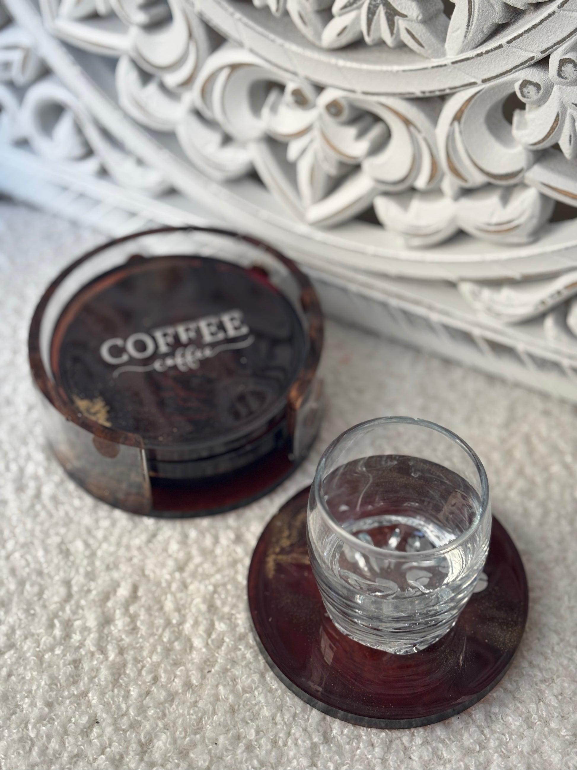 Vous aimeriez reposer vos tasses à café sur de jolie pièce en résine époxy et bien ce service de 4 dessous fabriqués à la main seront parfaits !