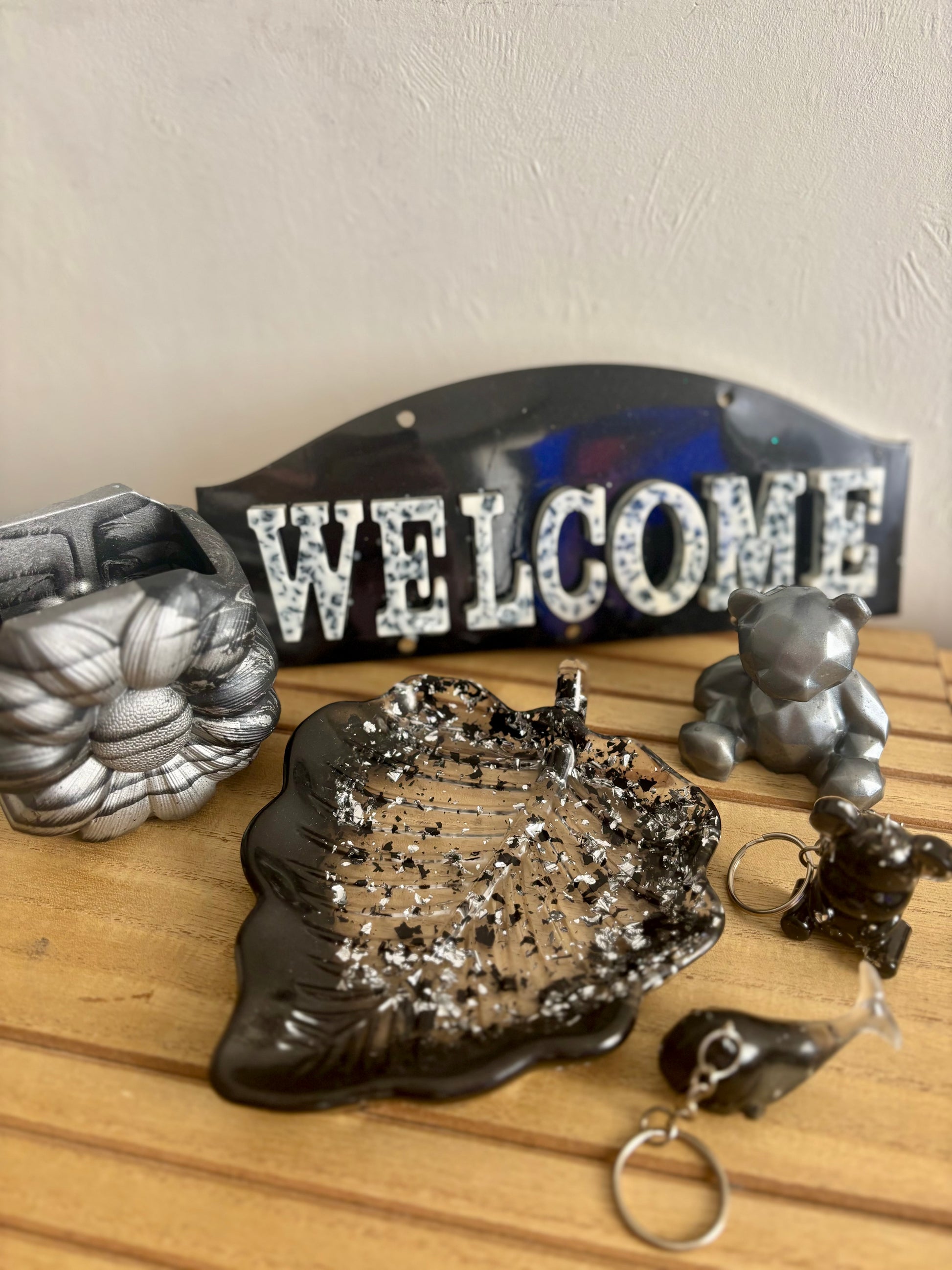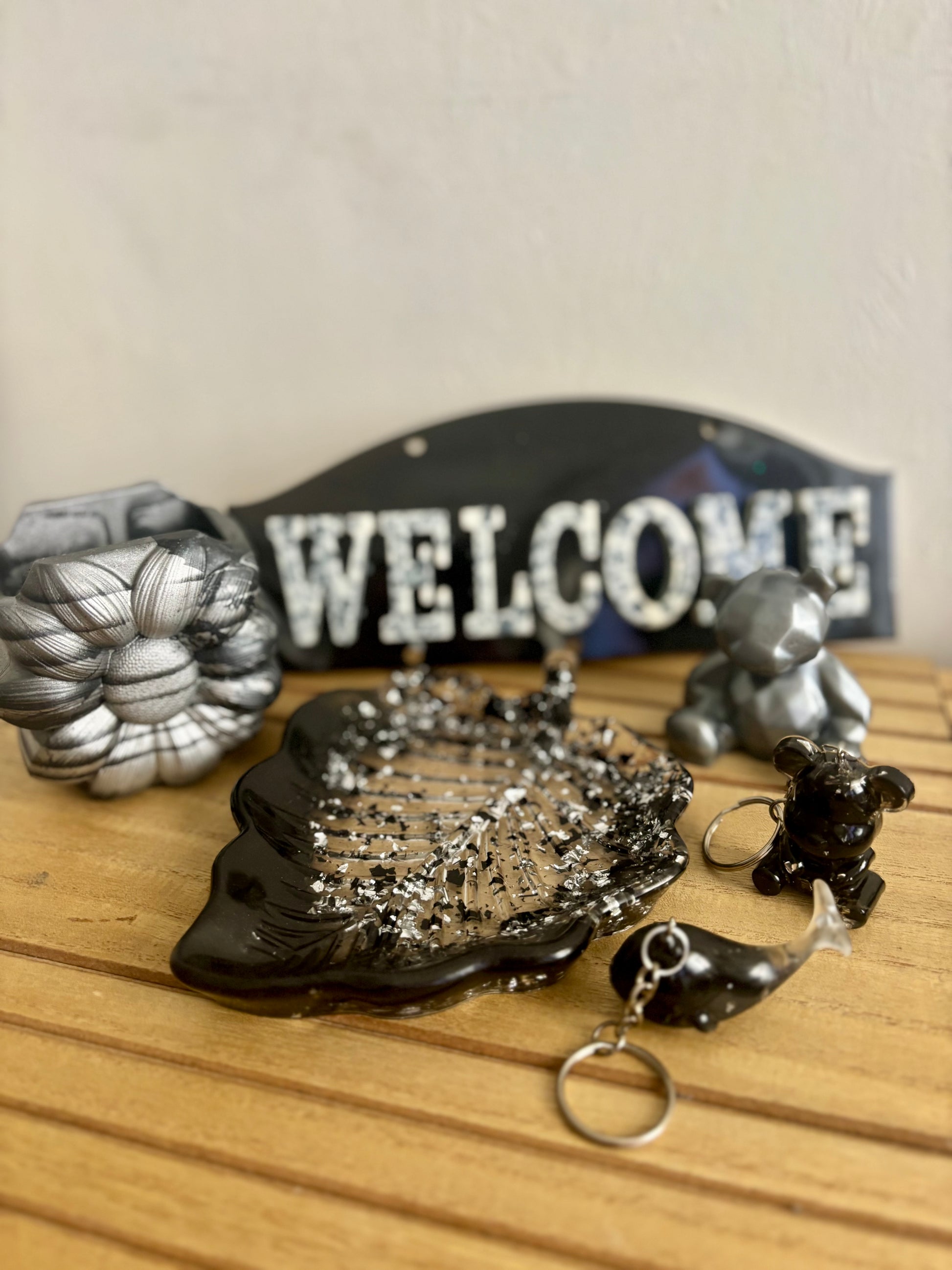 🪧 Une accroche murale “WELCOME” — effet noir métallisé, idéale pour entrée ou studio.